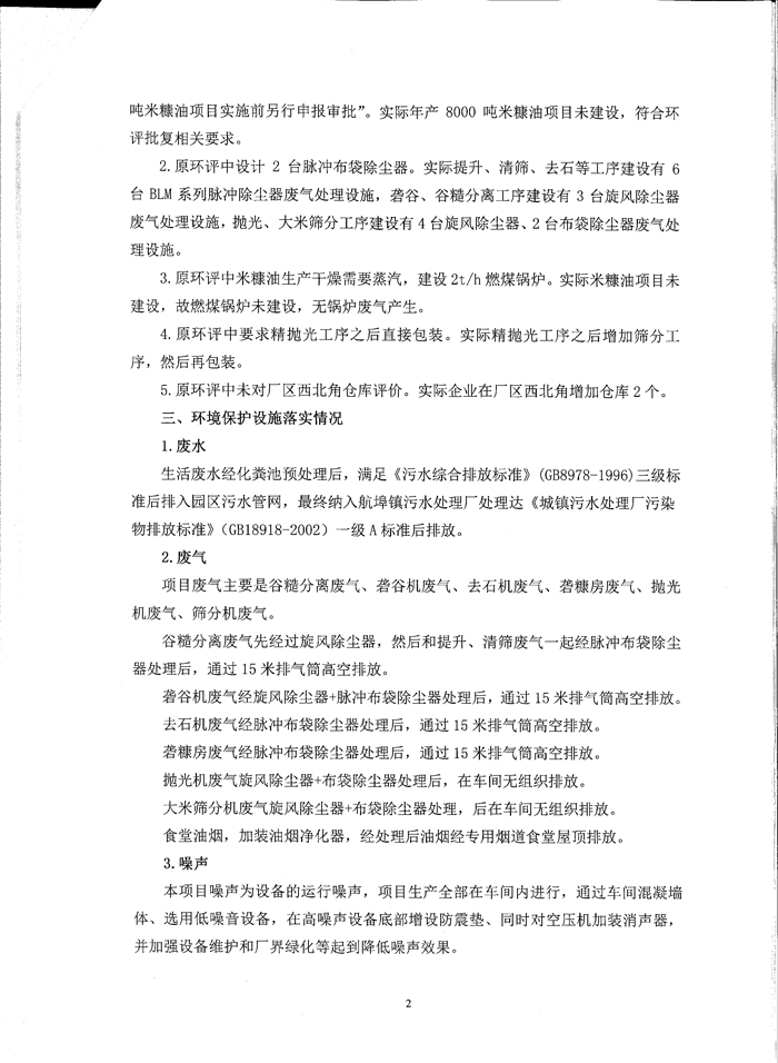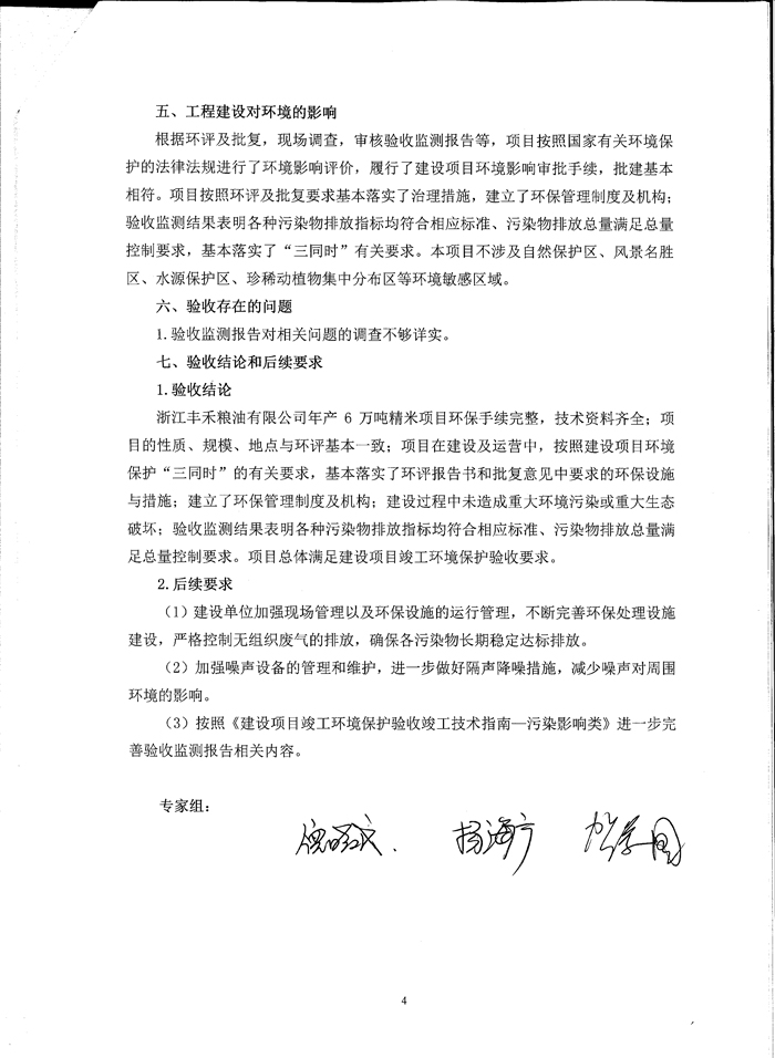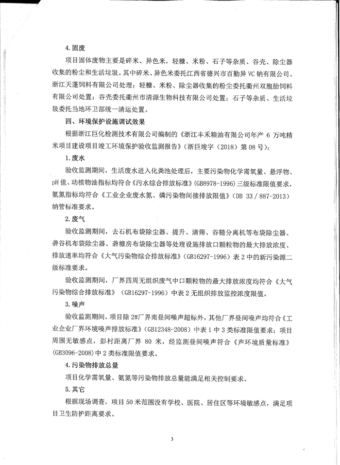 丰禾粮油年产6万吨精米项目竣工验收环境保护意见